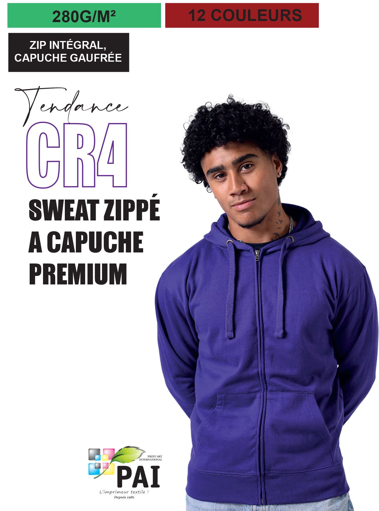 CR4 - Sweat zippé top qualité/prix - 280g